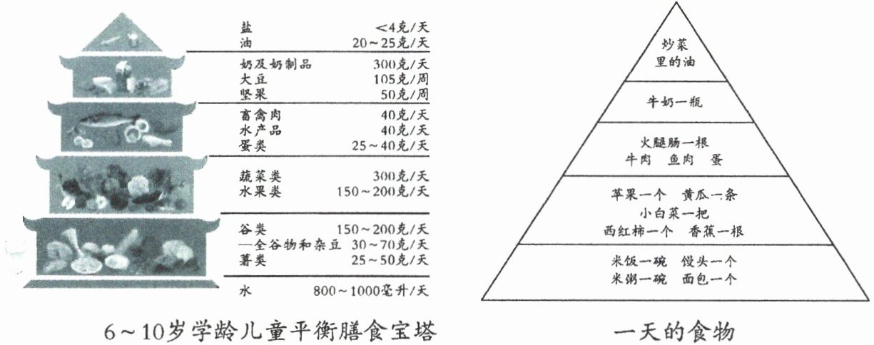 3. 与“平衡膳食宝塔”对比,我们家的饮食是否存在问题?为了让我们的身体保持健康,我们应该怎样调整?