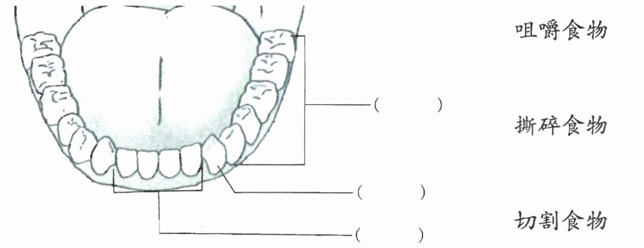 4.门齿切割食物 犬齿撕碎食物 臼齿咀嚼食物