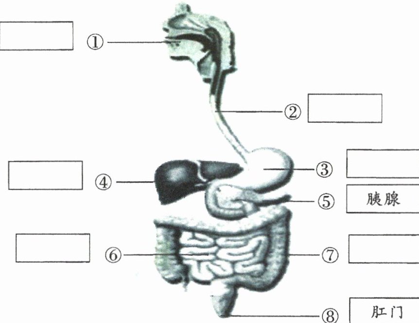 1.左:口腔 肝 小肠 右:食道 胃 大肠 肛门