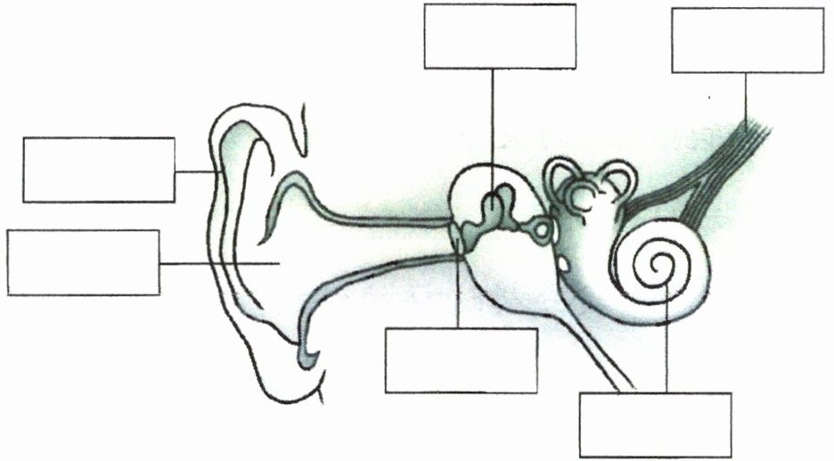 1. 在下面的耳朵结构示意图中填写各部分的名称。
