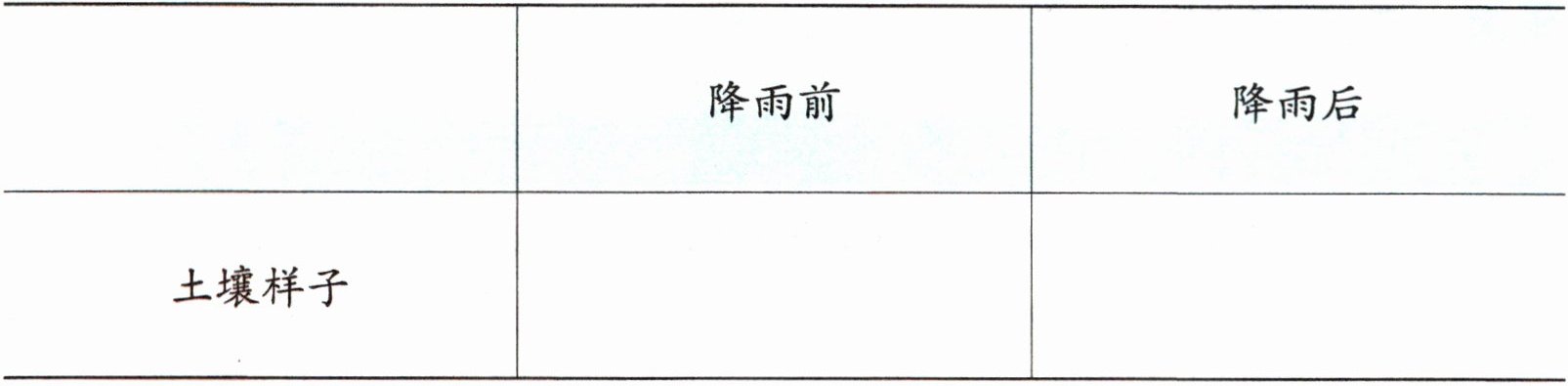 做一做:降雨前略 降雨后,沙子被细流带动沿坡面向下移动。水流到低洼处汇集后,水量变大,侵蚀力变强,土壤和沙子会堆积到坡脚,造成水土流失。