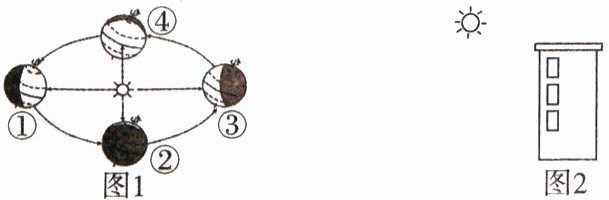 (5)当地球处于④位置时,观察到成都某小区正午时太阳位置(如图2所示),地球运行到①位置时,该小区正午时太阳所在的位置(