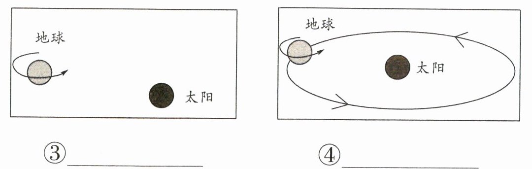 动手做:①地球不动,太阳围着地球转 ②太阳不动,地球围着太阳转 ③地球自转 ④地球围着太阳转,同时地球自转。