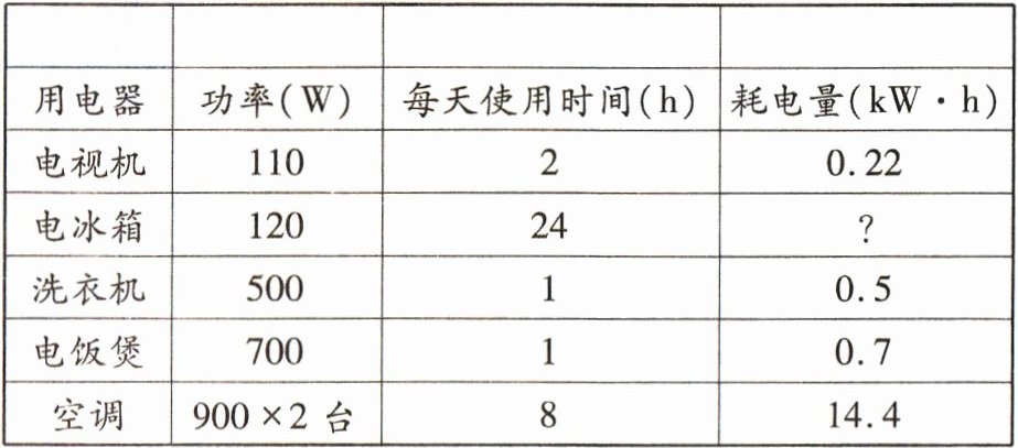 (2) 利用公式可以计算出,电冰箱每天的耗电量是