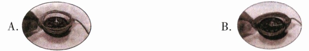 。(4%)(2) 科科找来导线绕成线圈扣在指南针上,组成一个电流检测器,为使检测的效果更明显,通电前,他应该按图(