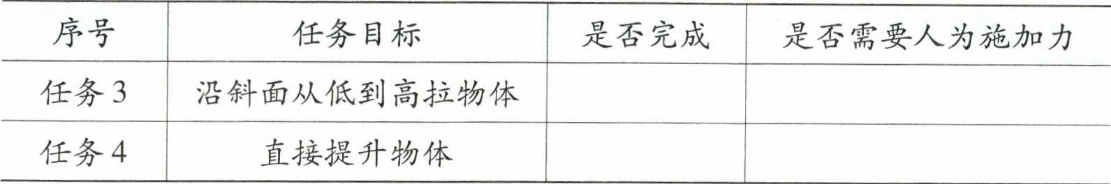 表格二 任务3 是 是 任务4 是 是 斜面能省力