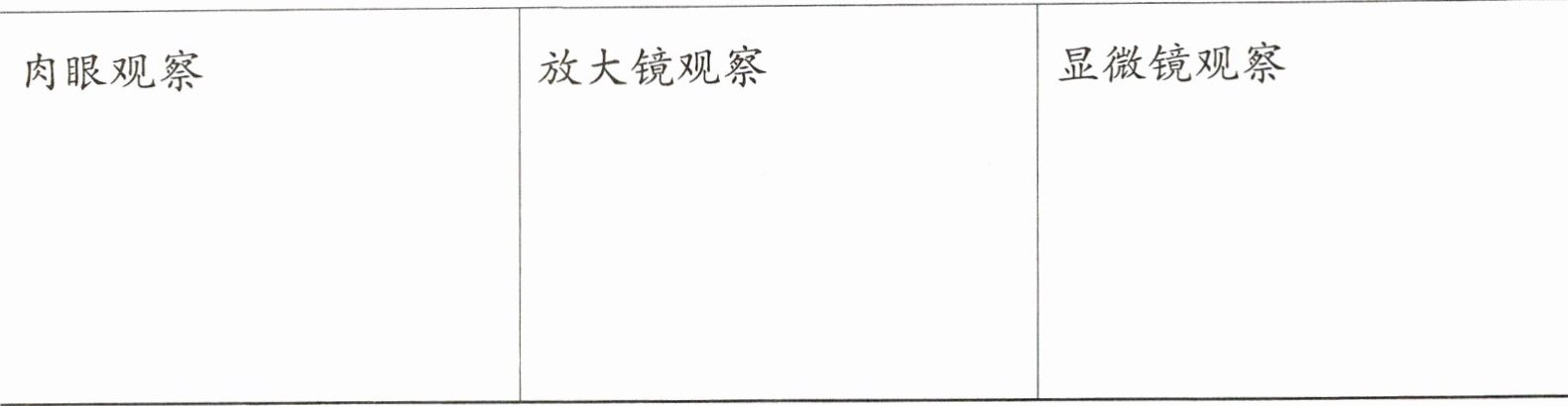 用肉眼、放大镜和显微镜对比观察昆虫的触角、翅、足或其他的某一个部分,用画图或文字记录的方式记录我们的发现。