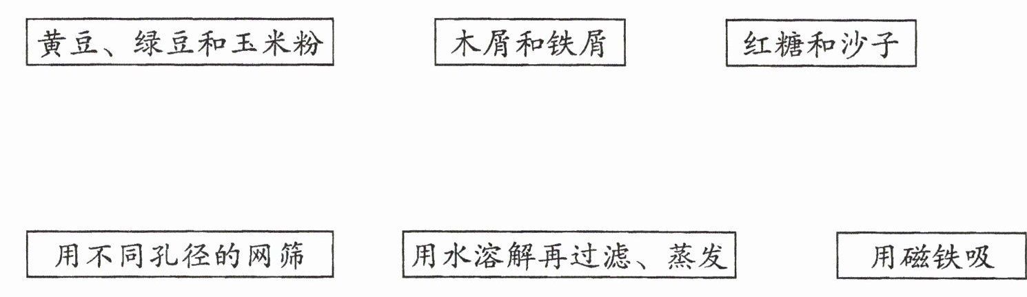 分离固体混合物的方法很多,找出能使下列固体混合物分离的方法。