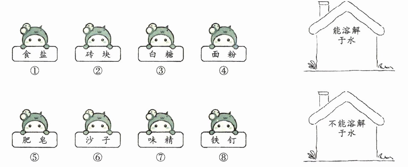 能溶解于水(①③⑤⑦) 不能溶解于水(②④⑥⑧)