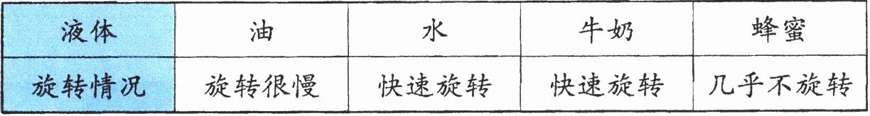 为比较油、水、牛奶和蜂蜜的黏稠度,科科把4种液体装在杯子里,用勺子快速搅动,观察它们的旋转情况。