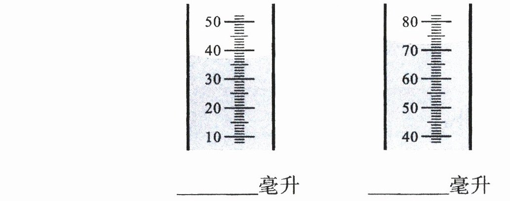 (4)下面量筒中液体的体积分别是多少?写在横线上。