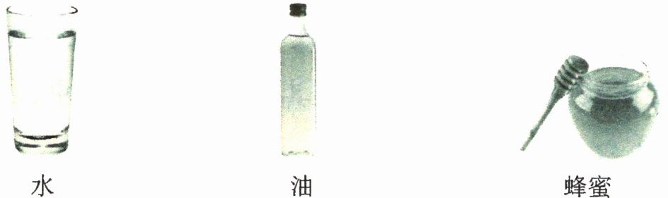 (2) 已知下图中烧杯里的液体体积相同,请在下面选填“蜂蜜”或“油”。