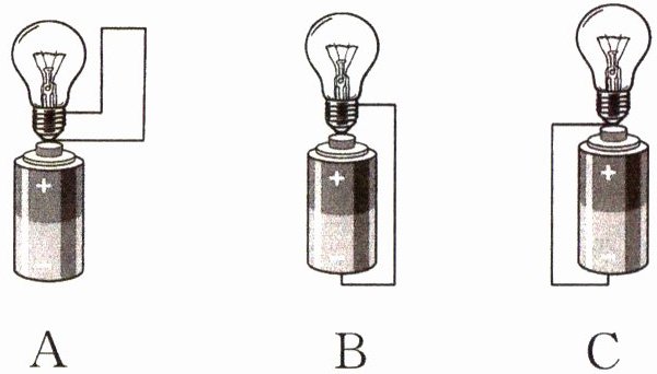 科科想要点亮小灯泡,于是尝试了下列三种连接方式。