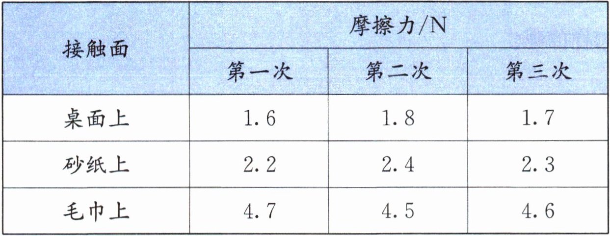 为了探究摩擦力的大小与什么因素有关,科科小组做了以下实验,测得数据如下表。