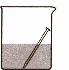 2. 如图所示,在烧杯中放入一枚铁钉,使其一部分在水面以上,一部分在水面以下,则铁钉最容易生锈的是(