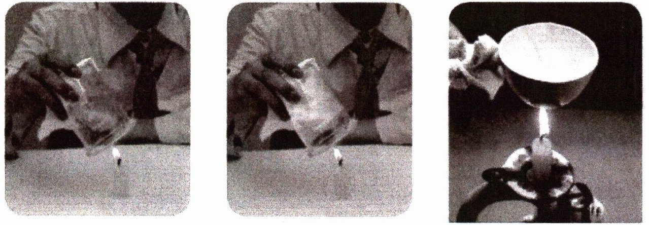 放在火焰上方烧一会儿,发现它的底部有黑色烟灰