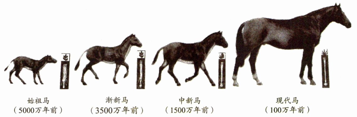 观察下面马的进化示意图。你发现了什么?