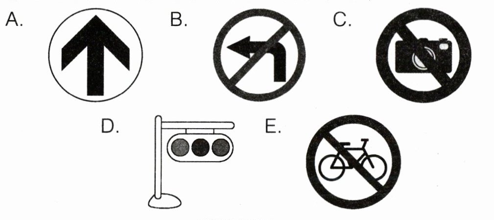)4. A. Don't turn left here. B. Don't turn right here. C. Don't ride bicycles here.(