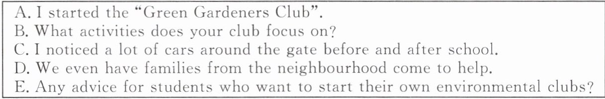 ),将其序号填入第 1~4 小题,并回答第 5 小题。Clubs Making a Difference for the Earth