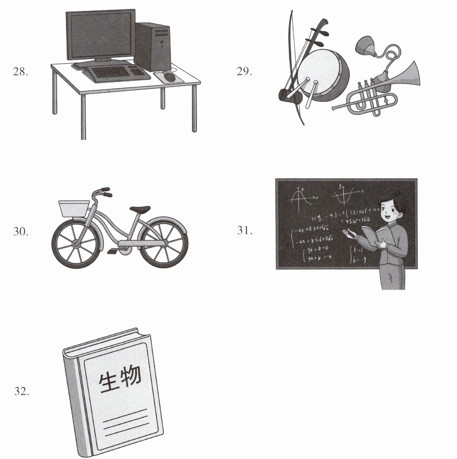 25.(体育;书桌)