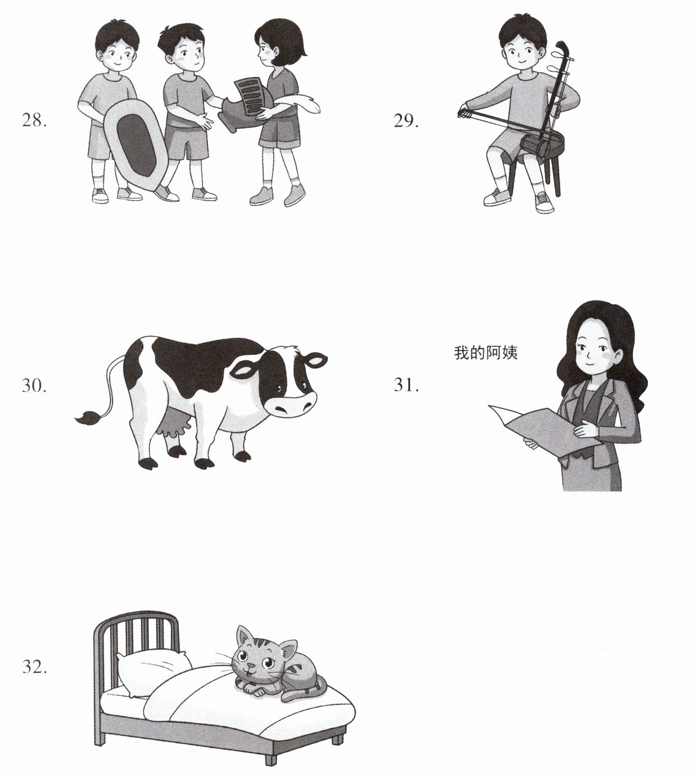 29. What does the boy like to do? He likes to play the erhu. / Play the erhu.