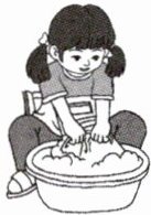 The picture shows a girl washing clothes. According to the requirement of simple past tense and the given word "yesterday", the answer can be: