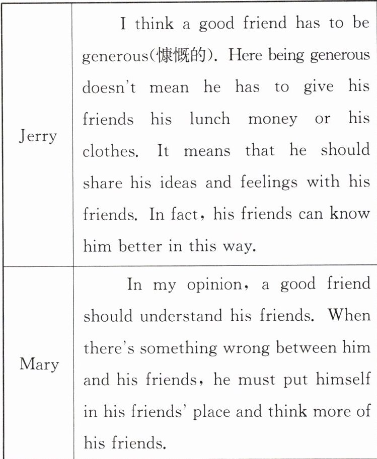 Three students are giving their opinions about what a good friend should be like.