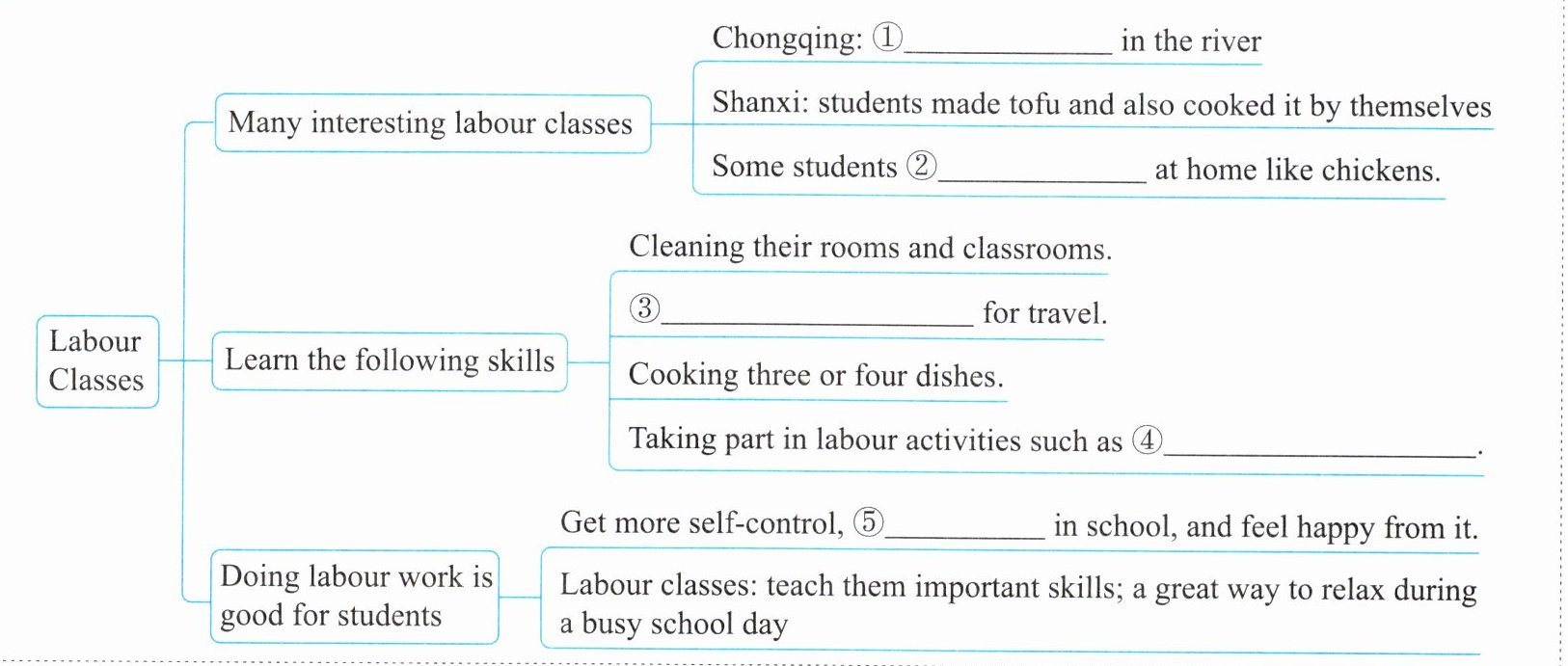 7. Which paragraphs tell what students learn in the labour classes in detail?(①=paragraph 1,②=paragraph 2...)