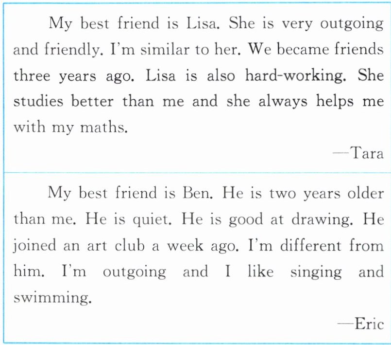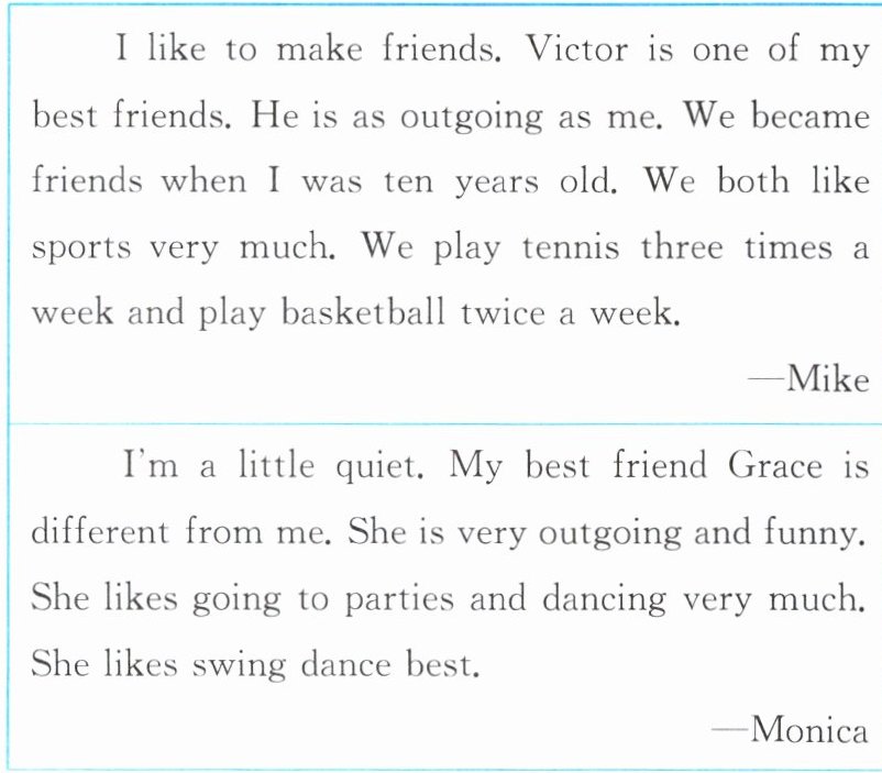 表格中的四个人介绍了自己与他们最好的朋友的性格特点、兴趣爱好等。 1-5 CDCAB