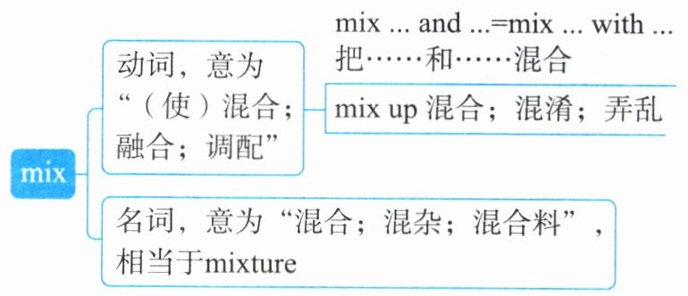 2.[应用]①mix; and/with ②mixed up
