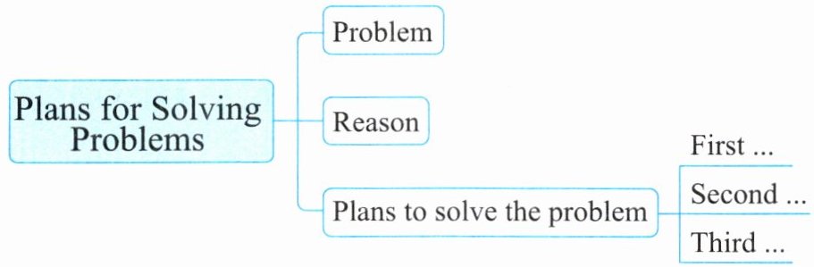 任务情境:你校英语社团组织了“争当校园小卫士”活动。请你和小组同学调查目前学校中存在的问题(如午餐排队太久、浪费水资源、乱扔垃圾等),选取其中一项提出你们解决此问题的计划,参考下面思维导图做一张海报或者写一份倡议书发表到校英文报上!