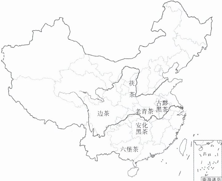 5. 我国是茶叶的故乡,茶文化的发源地。绿茶、红茶、黑茶、乌龙茶、黄茶、白茶为我国六大茶类。下图是我国几种黑茶主要分布图。图中黑茶与所在省级行政区简称对应正确的是(