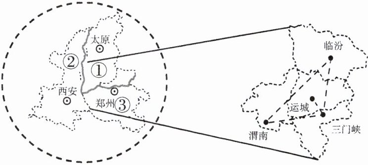 材料一:自黄土高原南下,黄河流经河南急转向东途经山西等省,奔向大海。在大拐弯处,分布着陕西渭南、河南三门峡、山西临汾和运城四市,这片5.78万平方千米的区域,联西北、通华北、接中原,被称作黄河金三角。