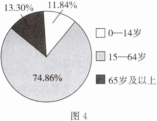 当一个国家或地区 65 岁及以上老年人口数量占总人口的比重达到 7%时,意味着这个国家或地区进入老龄化社会。图 4 为小筱同学根据第七次全国人口普查结果绘制的北京市人口年龄结构图。