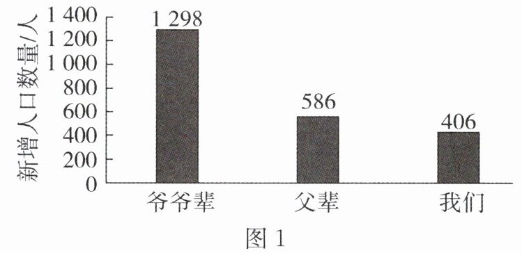 (1)小筱调查的是她的家族三代父系_______(填“新增人口”或“总人口”)的变化情况,表格体现其变化特点是_______;图 1 为小筱同学对全年级调查的结果,两次调查更能体现我国人口变化特点的是_______(填“第一次”或“第二次”)调查,由此可见,样本越大越能反映真实情况。图 2 中,2000 年以来我国人口增长特点是_______。