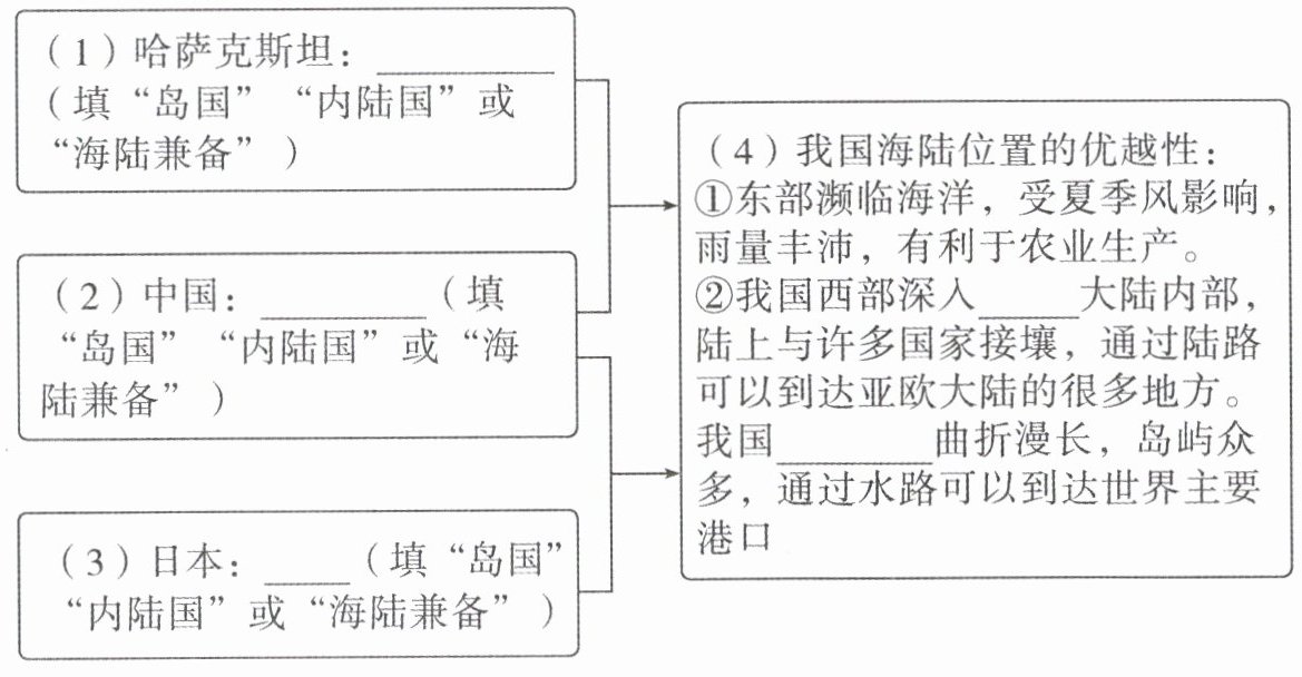 (二)读教科书图1.2,认识我国地理位置的优越性。