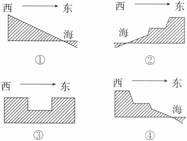 (4)“指南针”社团成员小明在模拟漂流后,要绘制一幅沿途地形剖面图,下列4幅剖面图中最符合实际的是