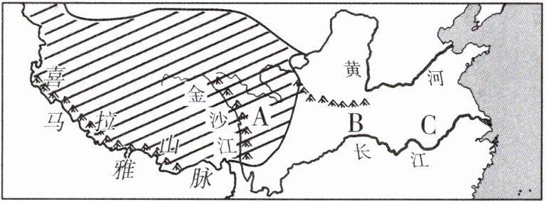 ,为地势第一、二级阶梯的分界线之一,B、C两处相比较,漂流比较平稳的是C