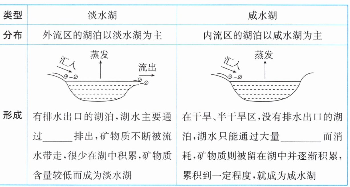 根据湖水中的矿物质含量高低可将湖泊划分成咸水湖和淡水湖。