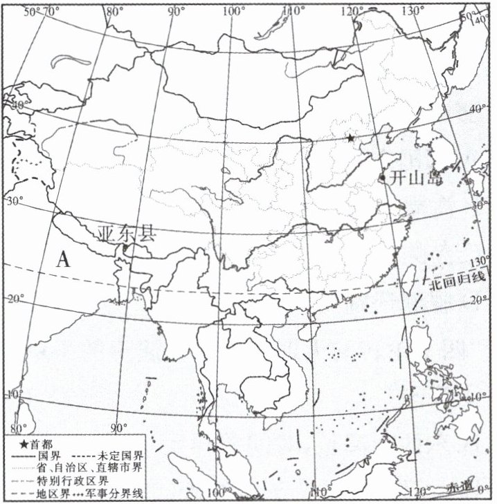 (邻国名称)边境线上的哨所。(2)开山岛是我国领海边缘的一个小岛,位于