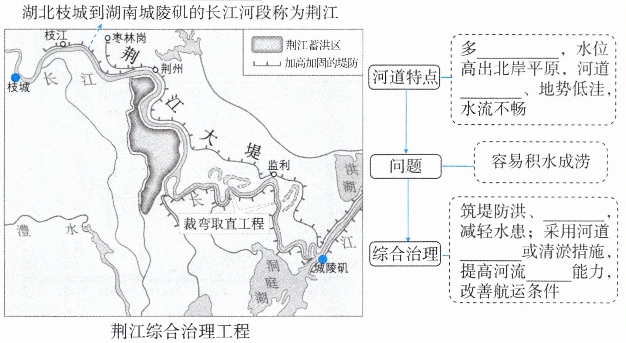 (2)在平原地区建设的____和____工程,有效地提高了长江中下游地区的____能力,如荆江综合治理工程。