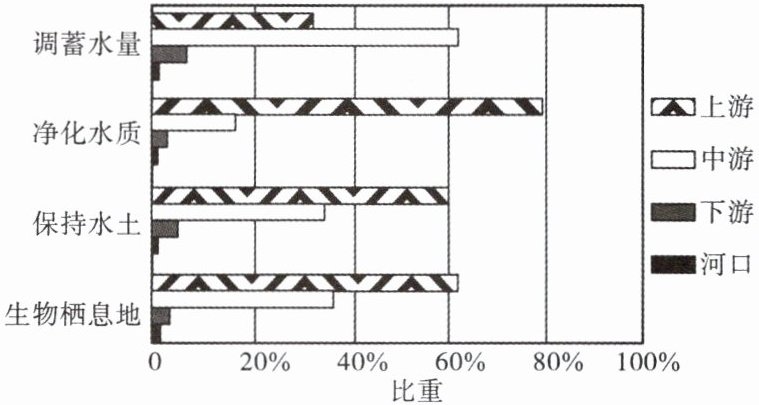 (湖南长沙)长江经济带坚持生态优先、绿色发展。读长江各河段四项生态保护功能强度示意图,回答8~10题。