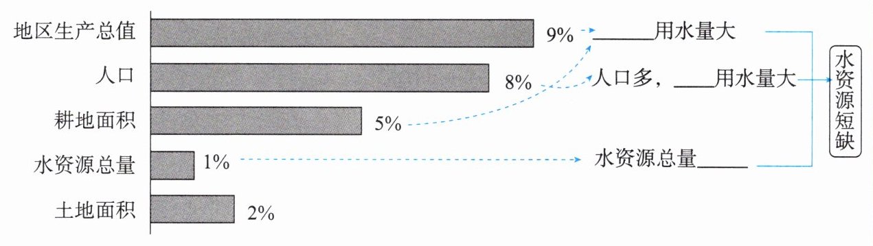 (1)“人多水少”→_______——水资源利用和保护的前提。