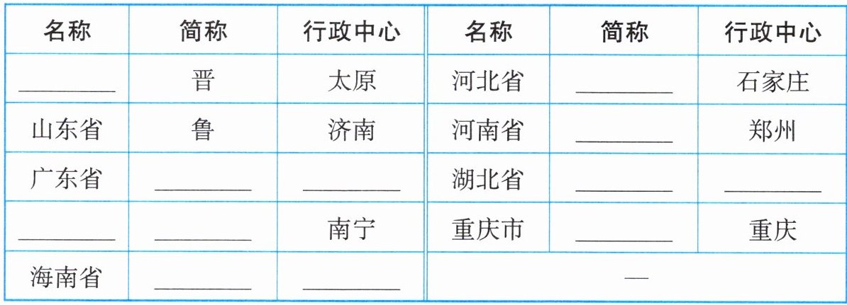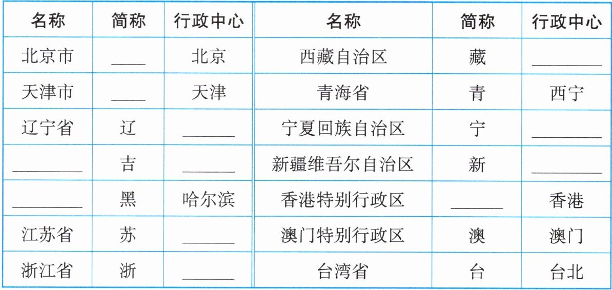 读教科书表1.2,对照图1.7,认识我国34个省级行政区的简称和行政中心。