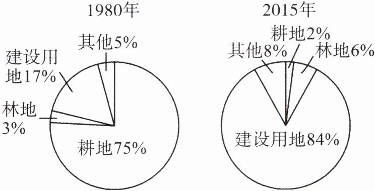 2.从1980年到2015年,该村土地资源利用变化情况是( )