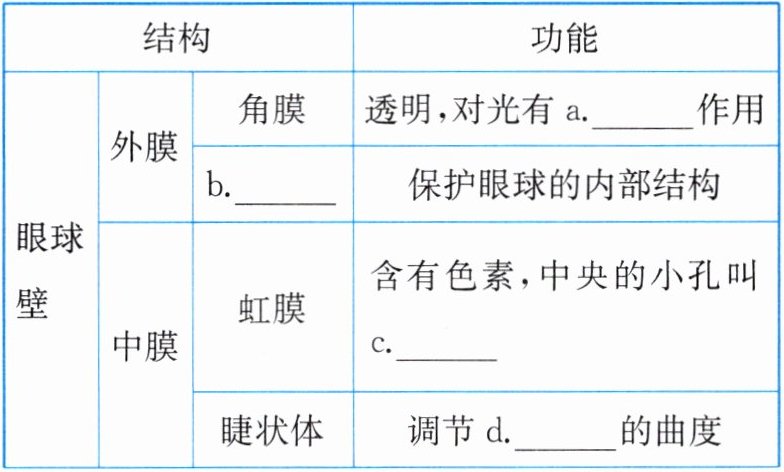 (1) 在眼球的结构中,巩膜俗称“白眼球”,虹膜俗称“黑眼珠”。