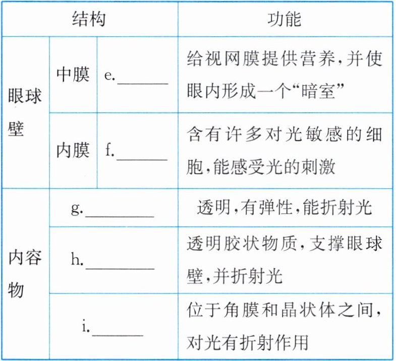 d.晶状体 e.脉络膜 f.视网膜 g.晶状体