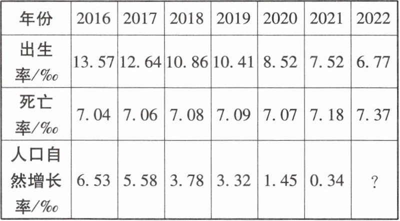 |人口自然增长率/‰|6.53|5.58|3.78|3.32|1.45|0.34|?|