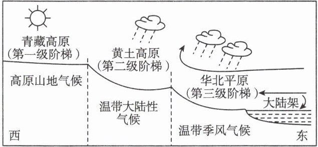 绘制地理示意图是我们学习地理的一种方法。下图是玲玲根据所学地理知识绘制的我国某区域地形和气候类型示意图,据此完成3~5题。