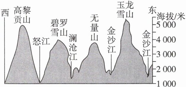 “仰望山接天,俯视江如线”是我国横断山脉的真实写照。读我国横断山区南段垂直剖面图,完成 9~10 题。
